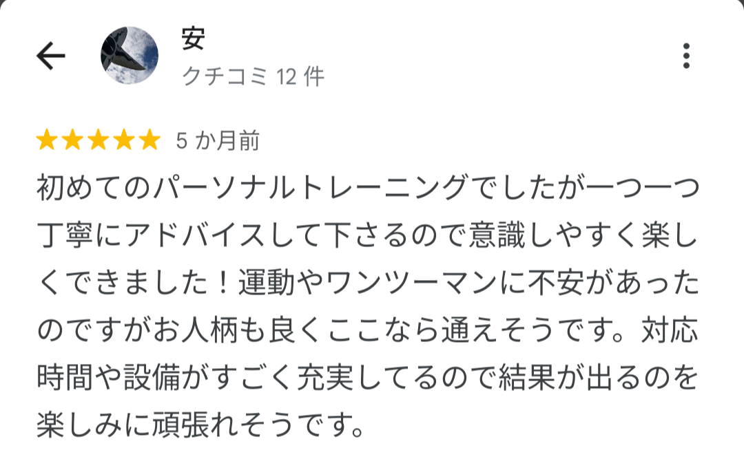 お客様一人ひとりの目標に合わせて、専門トレーナーが丁寧にサポート。運動初心者の方も安心して始められ、無理なく理想のカラダを目指せます。姿勢改善やダイエット、筋力アップにも対応。